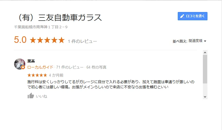 Google口コミ評価5頂きました!