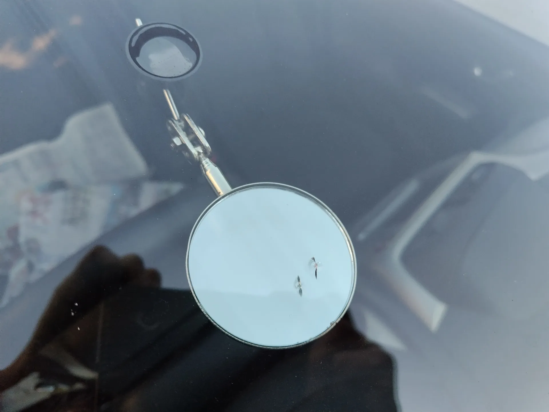 大きさは一円玉以内の小さなヒビですが、放置してると伸びてガラス交換になり、費用が跳ね上がります。